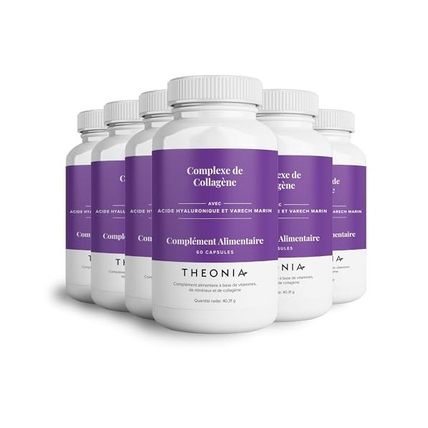 Complexe de collagène Theonia 360 capsules, acide hyaluronique et varech marin, vitamine E, C, biotine, ongles sains, peau, m