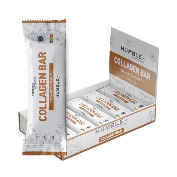 Barres Protéinées au Collagène 5g et Barres Protéinées 11g - Saveur Cacahuète - Pack de 12 barres x 46g - Riche en Fibres
