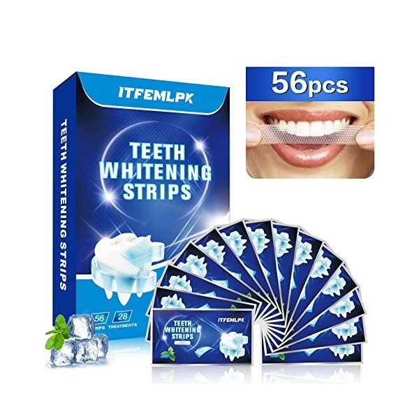 White Stripes ITFEMLPK 56 Teeth Whitening Strips 28 fois éclaircissement des dents au goût de menthe avec technologie fixe, d