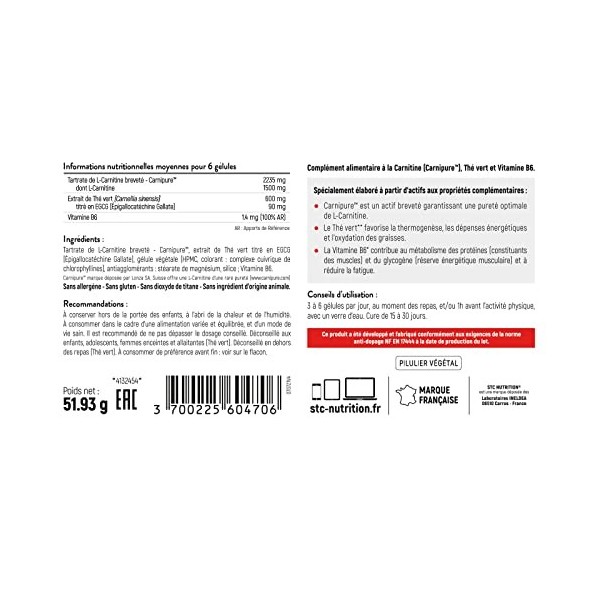 STC NUTRITION - Carnitine Complex - Action brûle-graisses démontrée - Active la thermogénèse - 1500 mg L-Carnitine + Thé Vert