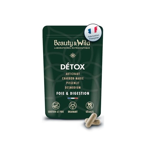🌻 DÉTOX NATURELLE - Artichaut, Chardon-Marie, Desmodium, Pissenlit, Fumeterre, le Laboratoire Beauty&Wild a sélectionné les meilleurs ingrédients de la nature pour former un complexe détoxifiant naturel et efficace. Le Pissenlit contribue à améliorer le confort hépatique et biliaire tout en favorisant le confort digestif.