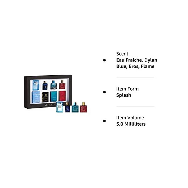 Le lot de figurines Versace comprend : Eau Fraiche 5 ml Dylan Blue Eau de toilette 5 ml Eau de toilette Eros 5 ml