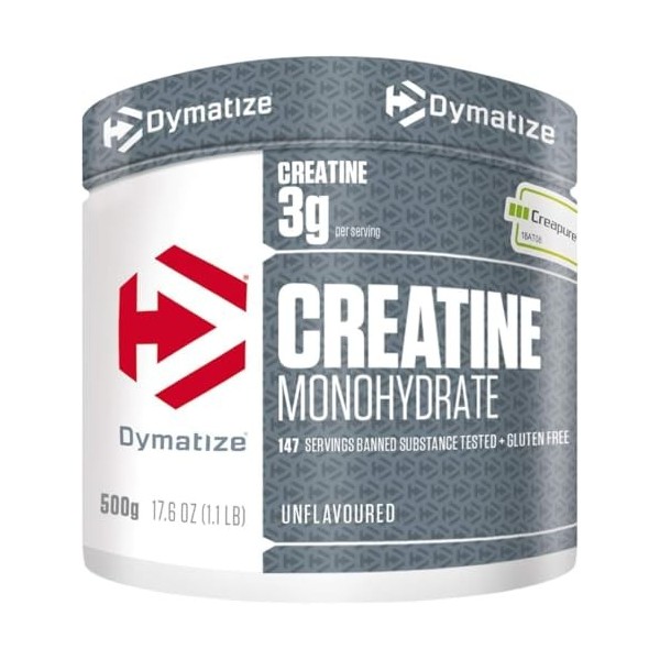 DYMATIZE CREATIN EST VÉGANE, sans gluten et sans lactose : que ce soit pour le petit-déjeuner, dans un shake pré- ou post-entraînement, ce supplément de créatine convainc par son excellente solubilité et son bon goût.