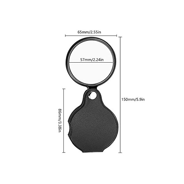 Compactes et pratiques: 3 x loupe de lecture, taille pliée : 8,5x6,4x1,2cm, lentille: 6cm, taille de la paume, les mini loupe de poche sont parfaites pour être transportées.
