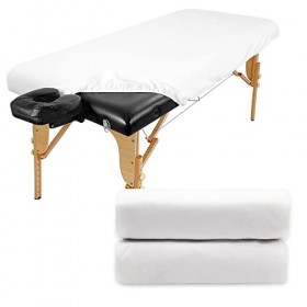 Tissus de qualité : le linge de spa réutilisable est fabriqué en Tricoté Coton, il est très doux, confortable et durable. Matériau respectueux de l'environnement pour vous garder en bonne santé.(Note : Housse table massage il n'est pas étanche!!!!!)