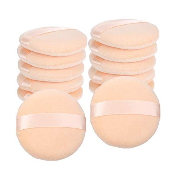 12 Pièces Houppettes à Poudre de Coton Rondes Large Taille avec Sangle Houppettes Maquillage de Poudre Libre 3,4 Pouces, Cou