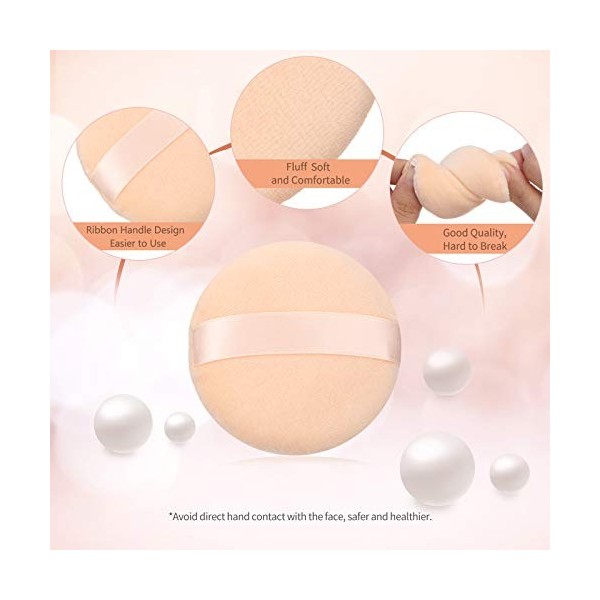 Détail dimensionné: dans une taille de 3,4 pouces, la bouffée de maquillage est plus grande que les autres bouffées, bien adaptée à une variété d'usages cosmétiques, la conception du ruban derrière est plus pratique à choisir