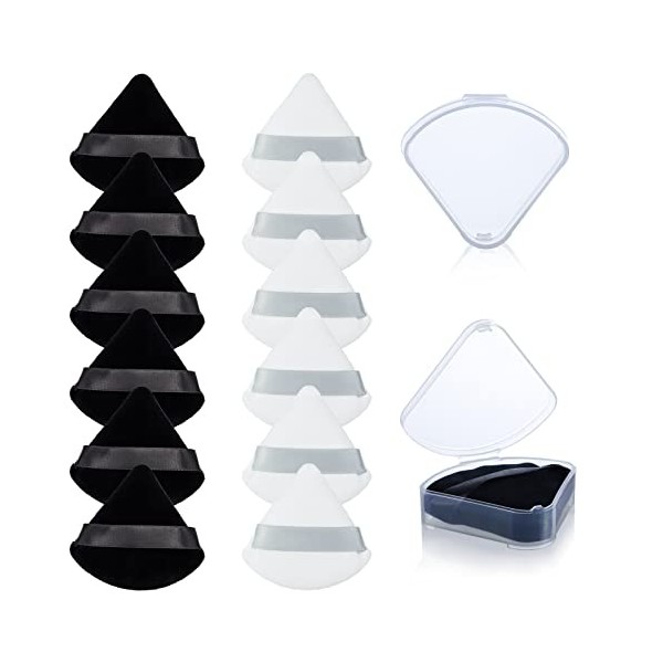 12 Pièces houpette maquillage triangle, Houpettes Portatives en Éponge Douce Pour le Visage, Houpette en Velours Triangulaire