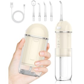 TUREWELL Jet Dentaire Hydropulseur Portable 310 ML avec 5 Modes, 4 Buses, Rechargeable Hydropulseur Dentaire Étanche IPX7 Pou