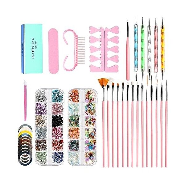 Generic Outils de manucure Set Perceuse Stylo Brosse à Ongles Lime à Ongles Strass Set Coloré Multifonctionnel A