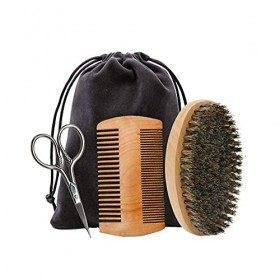 ➽ CE KIT CONTIENT: Peigne barbe + Brosse barbe 100% poils de sanglier + Ciseaux professionnels de barbe + Peigne barbe pochoir + Rasoir droit coupe-choux à lame interchangeable + 5 lames doubles + Pierre d'alun + Peigne porte-clé + Grand sac de rangement avec sa fermeture zippée.