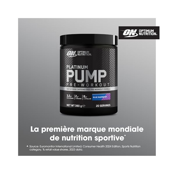 Optimum Nutrition ON Platinum PUMP, complément alimentaire pré-workout, intense et sans caféine avec Fruitflow, Beta-Alanine,