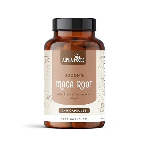 Maca Noire et Jaune 8000mg | 240 Gélules Vegan 8 Mois | Poudre de Racine de Maca du Pérou Ginseng | Haute concentration Mac