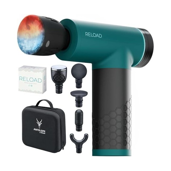 Antelope by Beurer RELOAD Massage Gun avec fonction chaleur & froid, appareil de massage musculaire pour points trigger, 5 tê