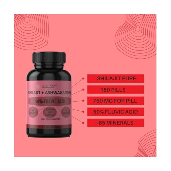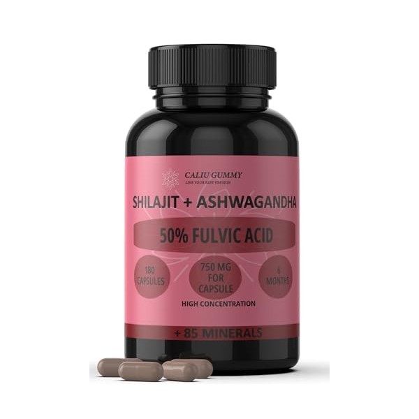 Shilajit Pur | 180 Capsules | 50% Acide Fulvique |6 mois | 144000mg |+Naturelle dAshwagandha |+85 Minéraux | Complément Alim