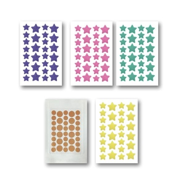 YOCDNOV Lot de 196 Patchs à Boutons – Étoiles et Patchs à Boutons Ronds avec Huile darbre à thé + Acide salicylique + Centel
