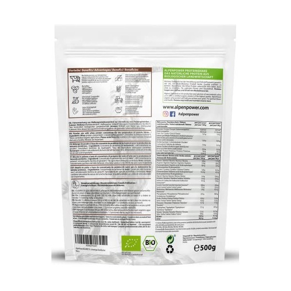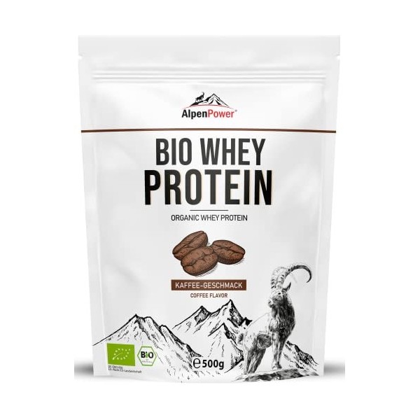 AlpenPower BIO Whey Protéine goût Café 500 g - Ingrédients 100% naturels - Sans additifs - Fabriqué à partir du meilleur lait