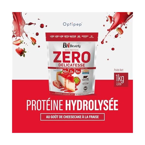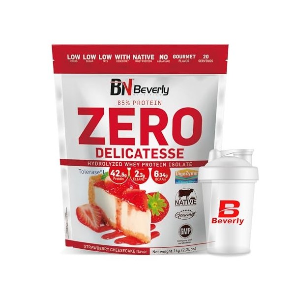Beverly ZERO DÉLICATESSE | 1 kg | 85% de protéines de lactosérum hydrolysées | Avec Digezyme et Tolerase | Masse et force mus
