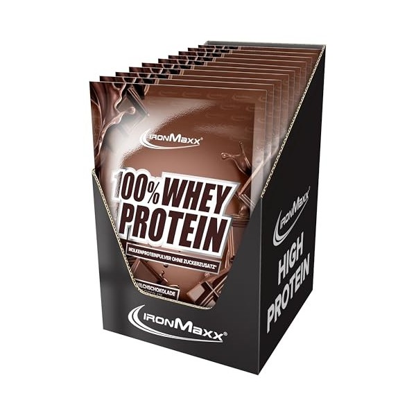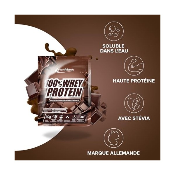 IronMaxx 100% Whey Protein Poudre - Chocolat 10 x 30g sachets | poudre de protéine de lactosérum réduite en sucre et soluble