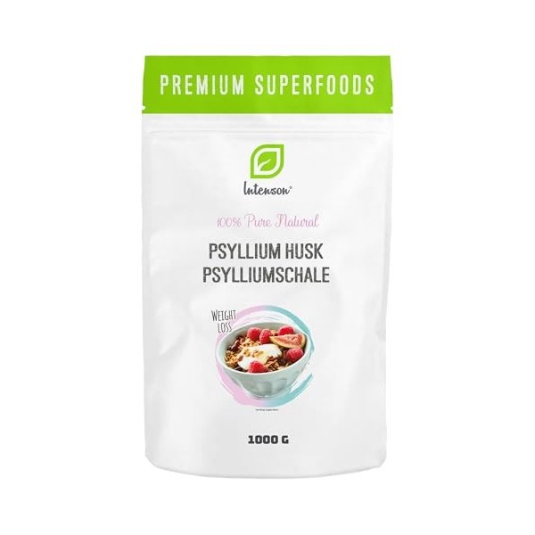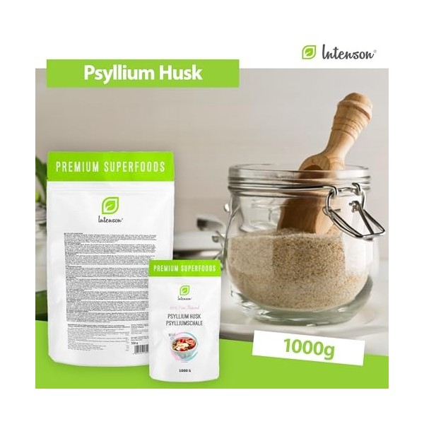 INTENSON Psyllium Husk 1 kg, Pure &Natural Psyllium Seeds Husks, High in Fibre, to be mixed with Water, Beverages, & Juices,
