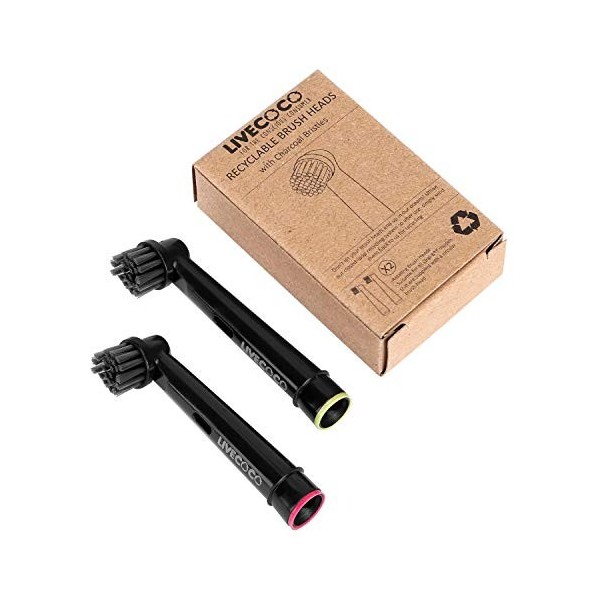 LiveCoco Têtes de brosse à dents recyclables, compatibles avec Oral-B. Poils infusés au charbon, idéal pour le blanchiment de