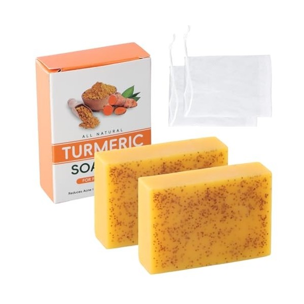 Savon à Lacide Kojique au Curcuma, Naturel Savon Curcuma Eclaircissant avec un Filet Moussant, Turmeric Soap Fait à la Main,