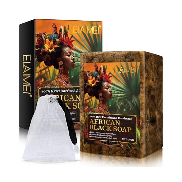 【Nourrissant Et Anti-Âge】Enrichi En Vitamines A, D, E Et K Pour Stimuler La Production De Collagène, Ce Savon Noir Africain A Des Propriétés Hydratantes Et Équilibrantes Pour La Peau, Tout En Combattant L'Acné Et Les Signes De Vieillissement, Laissant Votre Peau Lisse Et Ferme.