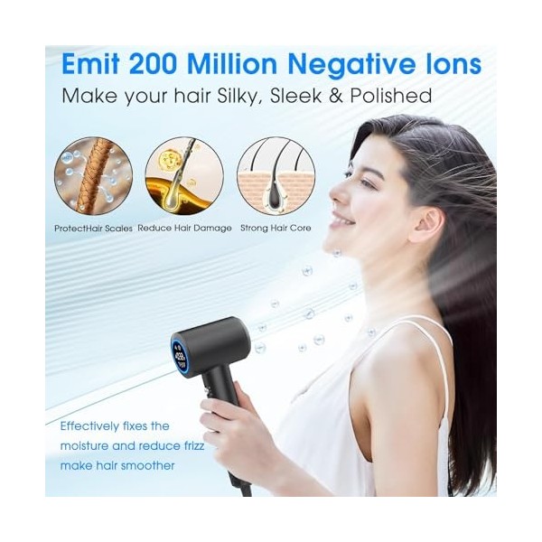 KARFUN Sèche-cheveux ionique,110,000 RPM HD Display Professional High-Speed Motor for Fast Drying,200 Million Low-Noise Plasm