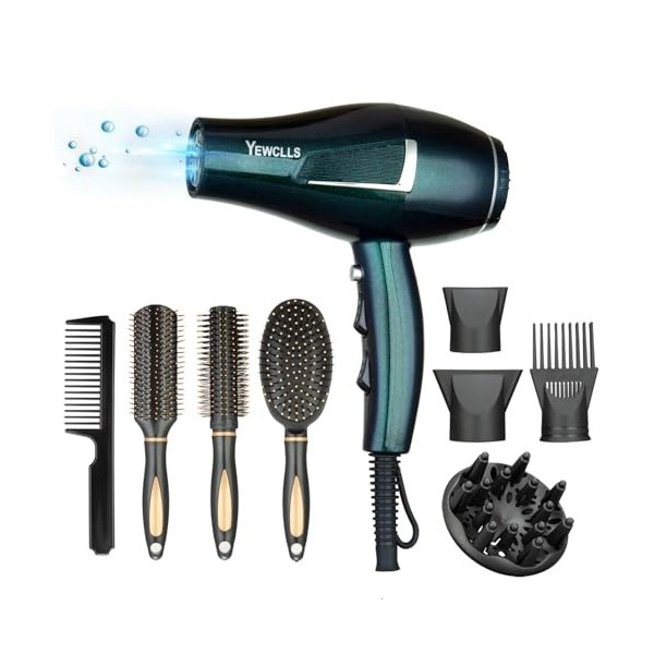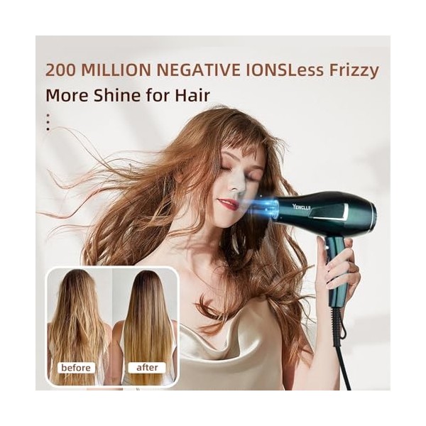 SÈCHE-CHEVEUX PUISSANT ET FIABLE 2100 W : Sèche-cheveux ionique professionnel, d'une puissance de 2100 watts, équipé d'un puissant moteur AC, d'un volume d'air léger et important et peut être séché rapidement et facilement. 3 réglages de température et deux vitesses de vent pour créer votre style et votre peignage préférés. La conception durable garantit une durée de vie plus longue.
