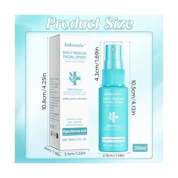 Acide hypochloreux Spray, Spray pour le visage et la peau, sûr pour la peau, à utiliser sur le cuir chevelu sec et après une