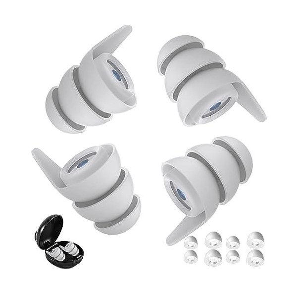SUGERU Lot de 2 paires de bouchons doreilles 3D en silicone souple - Pour dormir, réutilisables et lavables - Pour dormir, a