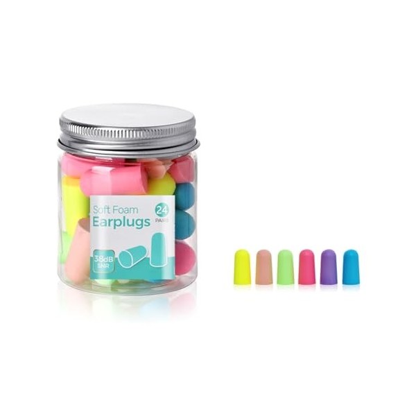 CALLYSONIC Lot de 24 bouchons doreilles pour dormir, en mousse à mémoire de forme, réduction du bruit, convient pour étudier