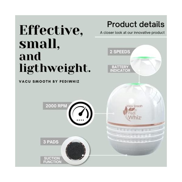 BEST DIRECT Vacu Smooth Original As Seen on TV est un délogeant de callosités de pédicure électrique avec aspirateur intégré, pour un résultat professionnel avec une peau douce et soyeuse. Il polit doucement les peau sèches et rugueuses en quelques secondes, et est assez puissant pour enlever même les callosités les plus dures.