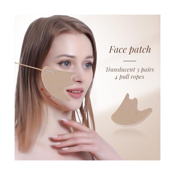 QOMJUFA Face Lift Tape, 3 paires Face Lifting Tape avec 4 Cordes Fines, Invisible Autocollant Lifting Visage, Immediat V Form