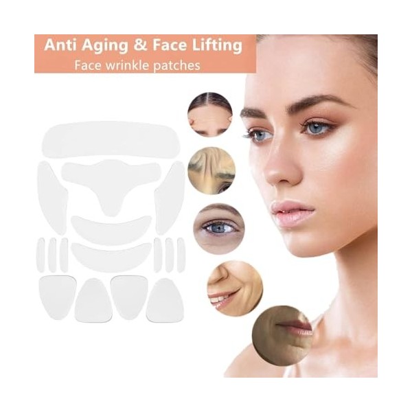 16 Pièces Patchs soin du visage Anti-Rides, Patchs Réutilisables Anti Rides, Design Doux et Respectueux de la Peau et Lavable