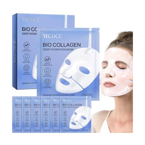 Masque Collagene, Masque Collagene Visage Korean, Masque de nuit au Collagène - Hydrate, Raffermit et Améliore La Vitalité de