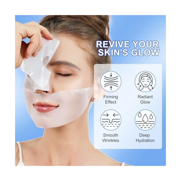Masque au collagène pour la nuit : Après 3-4 heures, le masque au collagène est absorbé par la peau et devient transparent. Il peut également être utilisé comme masque de nuit pour offrir un traitement relaxant et élastique à la peau pendant le sommeil.