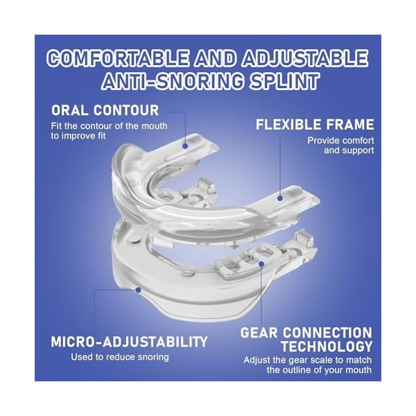 C'est scientifiquement conçu pour améliorer la respiration bruyante. En ajustant la position de la mâchoire, cela crée une voie respiratoire ouverte qui arrête le ronflement causé par les vibrations.