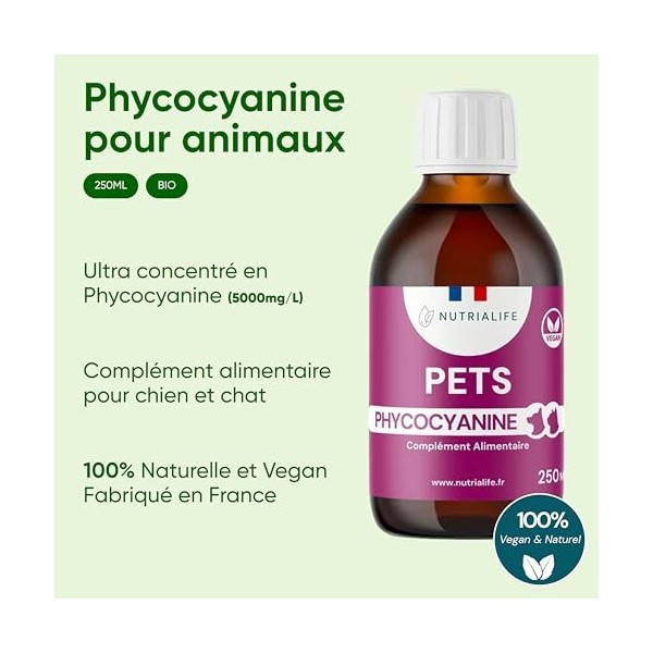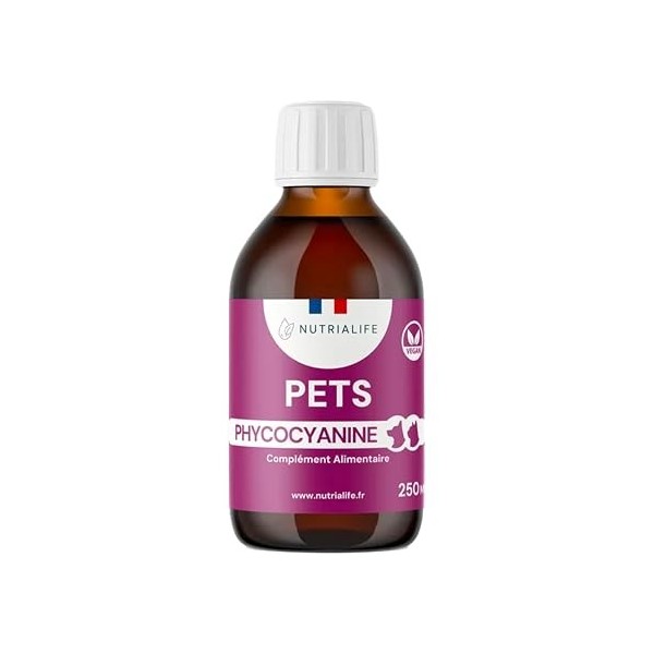 Nutrialife Spiruline Bleue Phycocyanine Liquide pour Chiens et Chats Pure 5000 MG/l - Énergie et Résistance - Complément Alil
