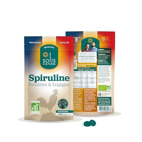 Spiruline bio 100% française — 1 sachet 80g de comprimés AB cure ±20 jours — DIRECT PRODUCTEUR — riche en fer, minéraux, vi