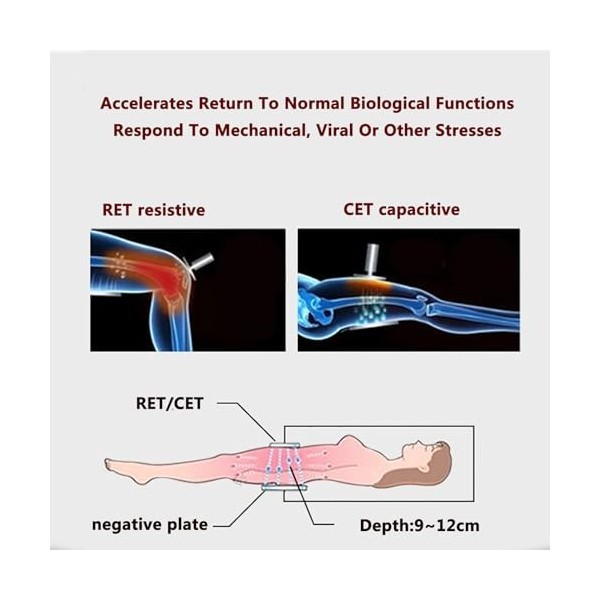 【2 modes】 Mode supraconducteur CET : 1000-3000 Hz répare en profondeur les tissus osseux et ligamentaires et accélère le métabolisme cellulaire. Mode de perméabilité magnétique RET : réparation superficielle 1-100 Hz du fascia musculaire et du tissu de la colonne lombaire, solution à divers problèmes de douleur.