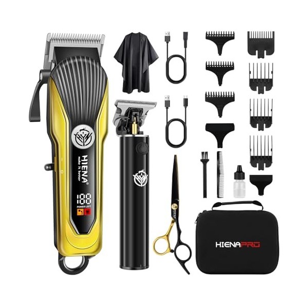 HIENA PRO Ensemble de tondeuse à cheveux pour homme professionnel, coupe cheveux rechargeable, T-Blade Tondeuse Machines à ch