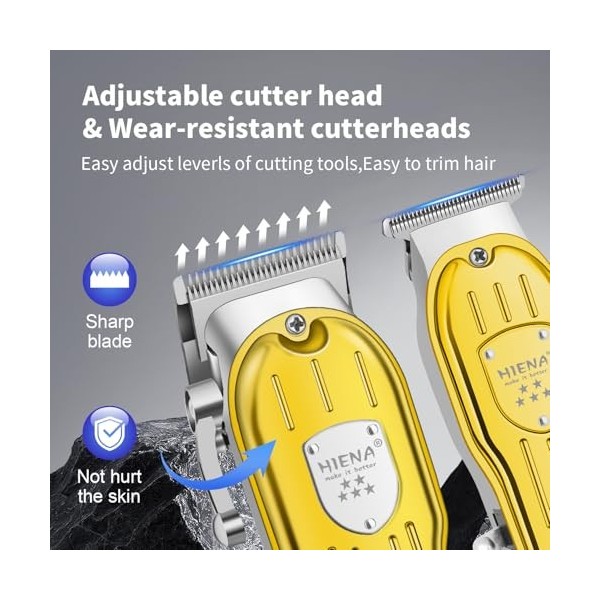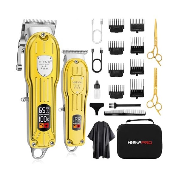 HIENA PRO Ensemble de tondeuse à cheveux pour homme professionnel, coupe cheveux rechargeable, machine à cheveux réglable pou