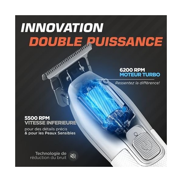 🚀 TURBO PUISSANCE / MOTEURS HAUTE PERFORMANCE - Tondeuse cheveux professionnelle, sont dotés d'un moteur turbo amélioré pour effectuer le travail rapidement et efficacement. Ils sont l'outil ultime pour obtenir des résultats dignes d'un salon de coiffure, gèrent facilement les cheveux les plus épais et vous offrent une coupe précise à chaque fois. De plus, ils possèdent des moteurs à faible bruit et ne produisent pas ce bruit agaçant qui dérange l'oreille.