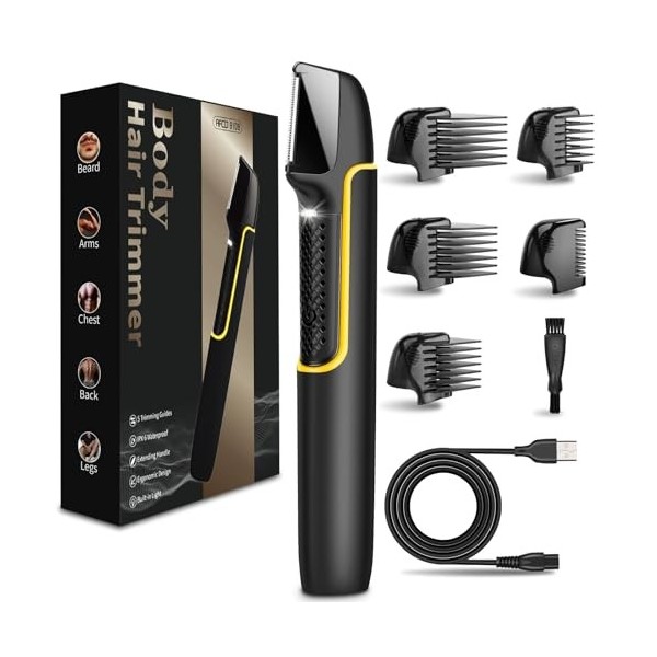 KUAIVO Tondeuse Corps Homme, Multifonctionnelle Tondeuse Intime Homme avec 5 Peignes pour une Utilisation Humide/sèche, Tonde