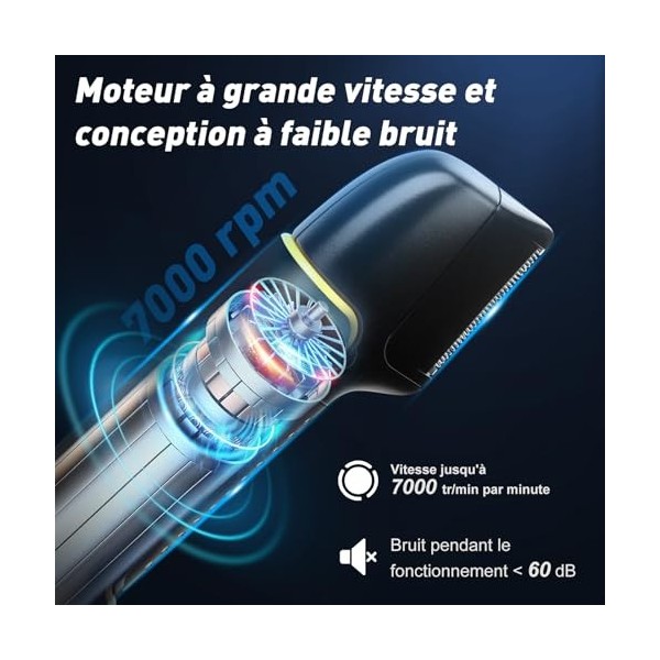 【Moteur puissant et lame en V】Contrairement à l'inconfort et à la douleur des rasoirs traditionnels, le rasoir peut atteindre 7000 tr/min, ce qui peut couper rapidement et avec précision, assurant une expérience de rasage en douceur. La lame tranchante unique en forme de V et la conception rapprochée du tondeuse corps homme peuvent minimiser le risque de coupures, d'arrachage des cheveux et d'irritation de la peau.