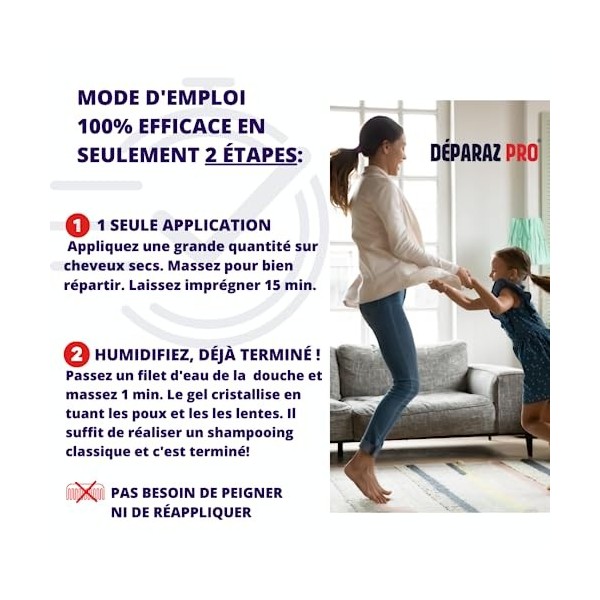 💎 NOUVELLE GÉNÉRATION | Basé sur une nouvelle technologie naturelle, DÉPARAZ-PRO se démarque des produits à base d'huile de coco ou de silicone (diméthicone) réputés gras. Grâce à sa technologie breveté, DÉPARAZ-PRO a le pouvoir d'éradiquer 100% des poux et des lentes même les plus résistants, en une seul application. DÉPARAZ-PRO est adapté à tous types de cheveux (lisses, bouclés, frisés, crépus) car DÉPARAZ-PRO ne nécessite AUCUN PEIGNAGE pour être efficace !