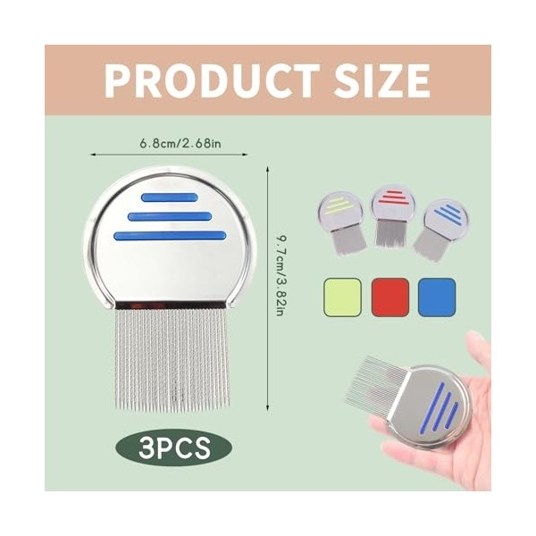 Lot de 3 peignes à poux réutilisables en acier inoxydable avec rainures en spirale pour enlever en toute sécurité les poux, l