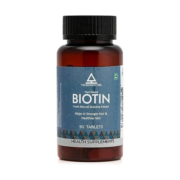 The Blessing Tree Biotine à base de plantes pour des cheveux plus forts et une peau plus saine pour femmes et hommes avec bambou Ext, Amla et Brahmi. 90 gélules végétales