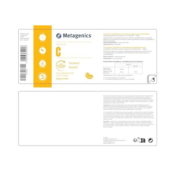 Gummies vitamine c metagenics: élaborées avec une forme naturelle de vitamine C, ces délicieuses vitamines à mâcher quotidiennement favorisent le bien-être général et aident à combler les carences nutritionnelles